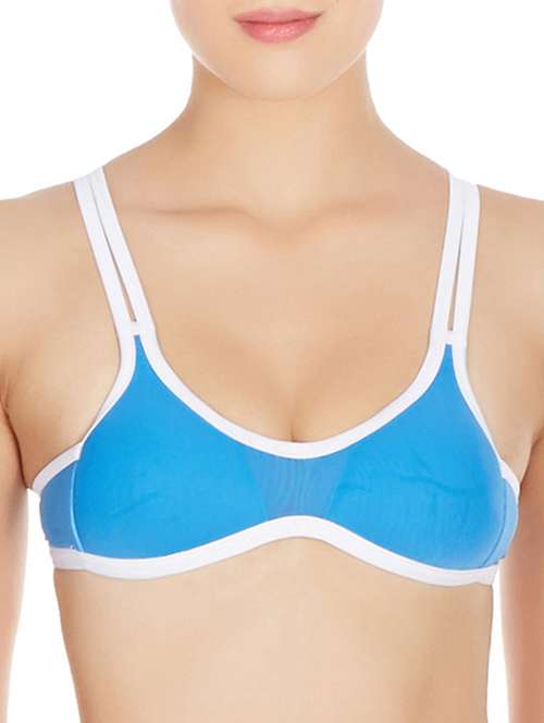 blue nylon sports bra