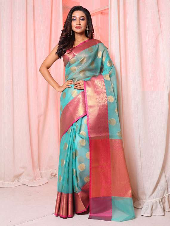 - » women's self design blue colored saree with blouse