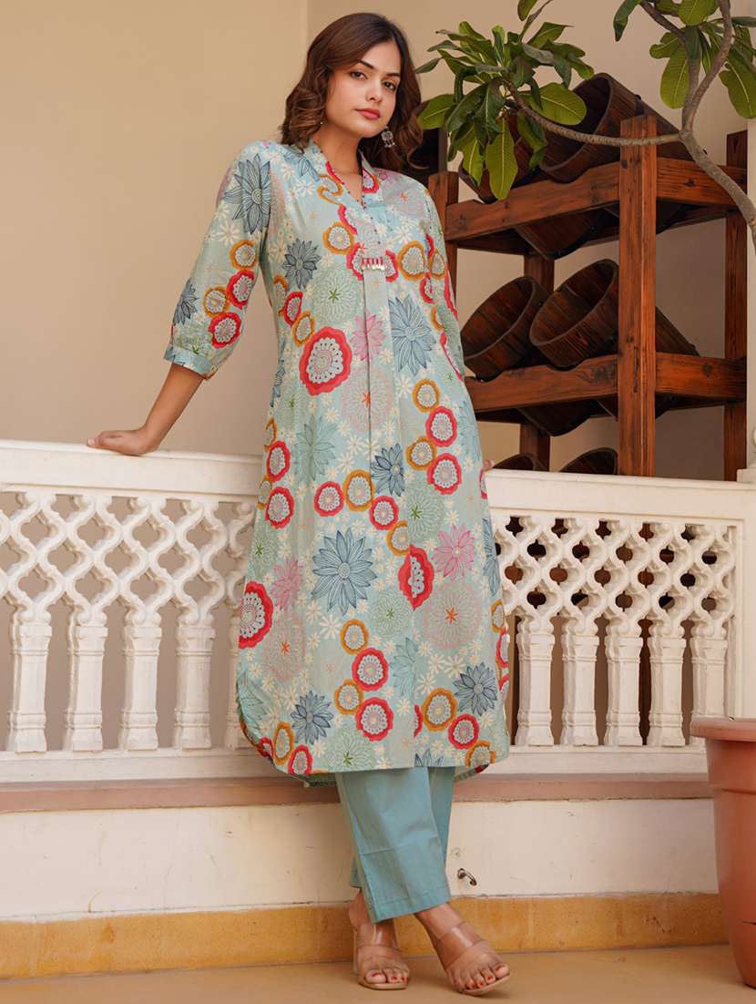 - » women floral three quarter sleeve kurta pant set