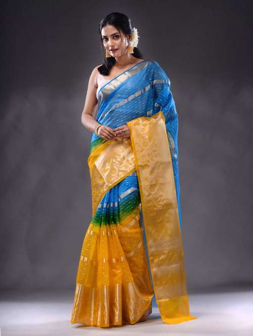 women's self design blue colored saree with blouse - 19992873 - Very Small Image - 1