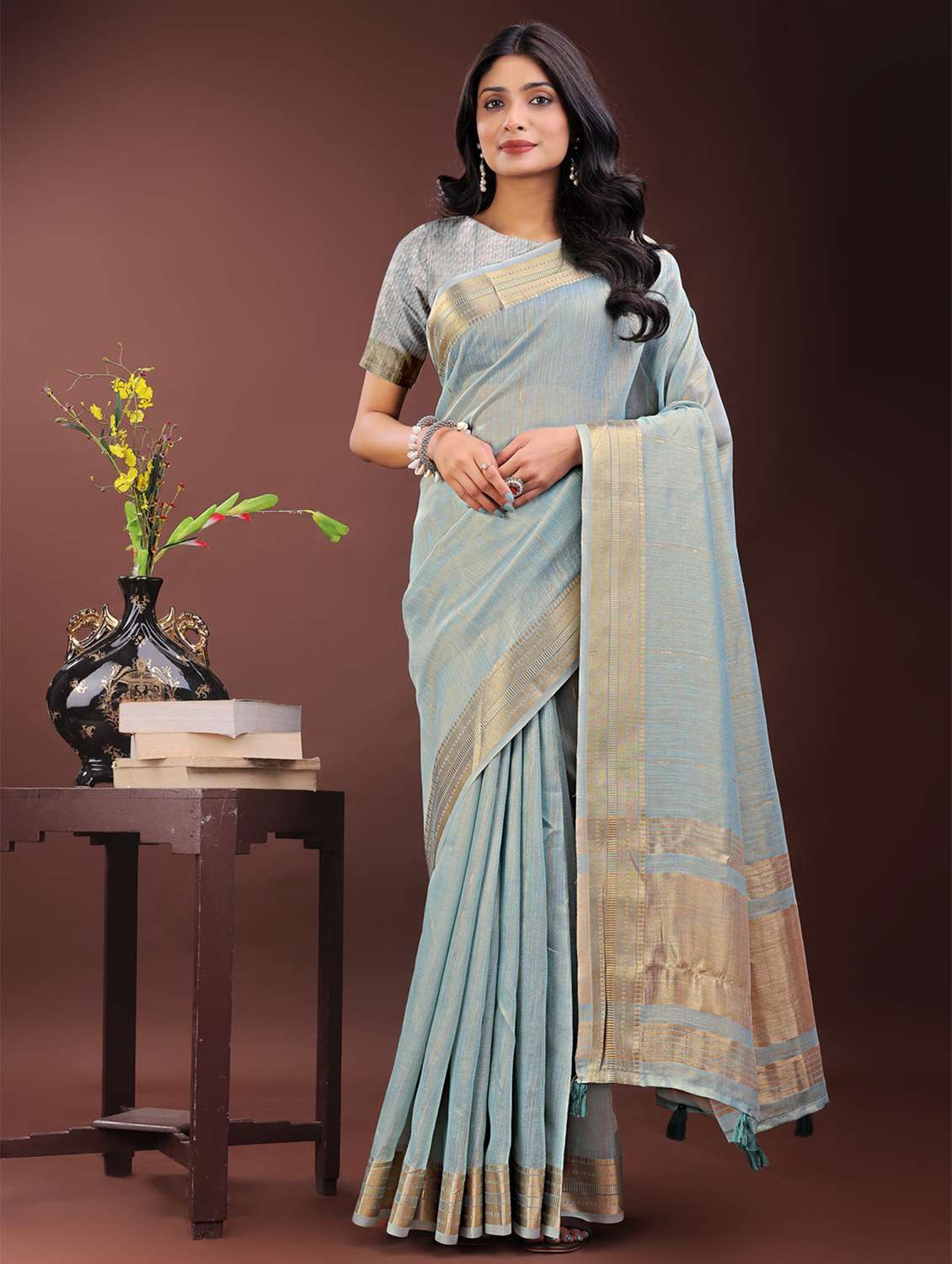 women self design bordered saree with blouse - 21969881 - Very Small Image - 1
