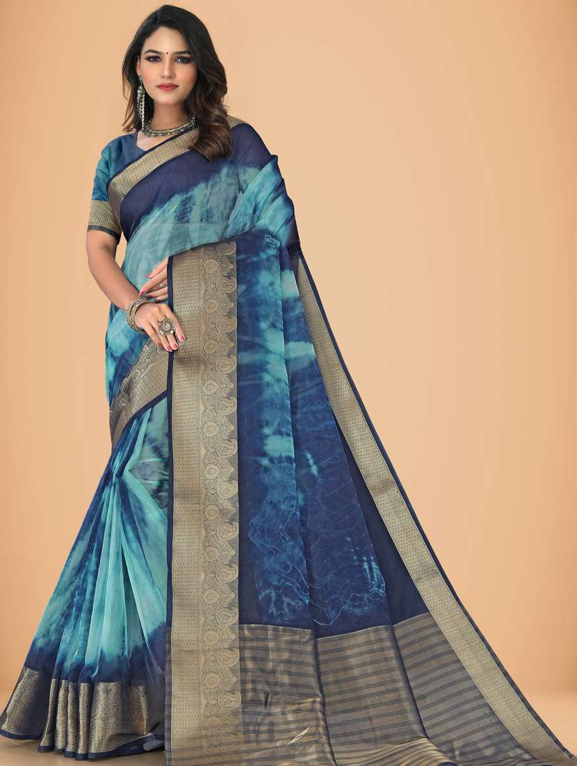 Rivana Fashion Presents the Stylish Organza Saree for Todays Indian Women & girls. Look stylish by wearing Our Sarees and revel in the comfort of the blended fabric. This Sarees will surely fetch you compliments for your rich sense of style. This Stylish Design Saree comes in a beautiful and unique print. The material of the saree is comforting and will highlight all your features and make you look even more beautiful and attractive. Saree Is An Ideal For Evening Wear, Ceremony Wear, Social Gathering, Wedding Reception Wear As Well As Party Wear. This Fancy Saree Comes Along With Matching Fabric Unstitched Blouse Piece That Can Be Tailored As Per Your Style And Comfort.