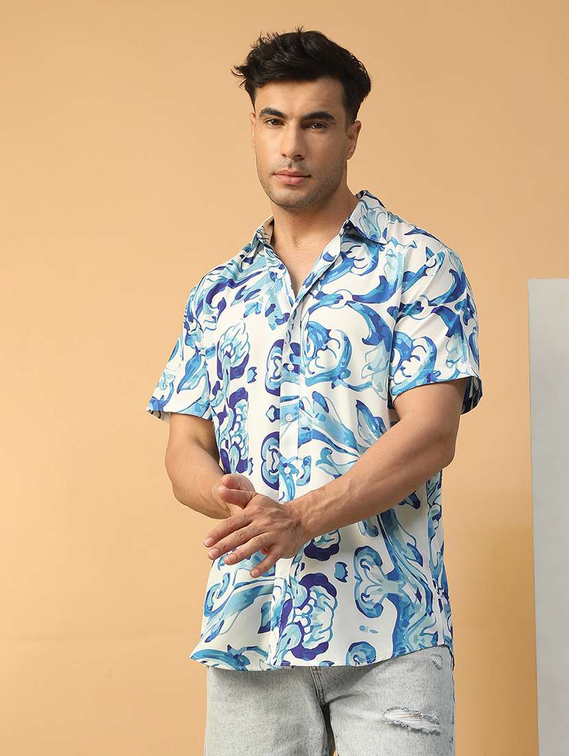 men abstract printed short sleeve regular fit casual shirt
