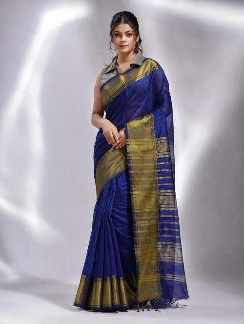 blue plain sarees