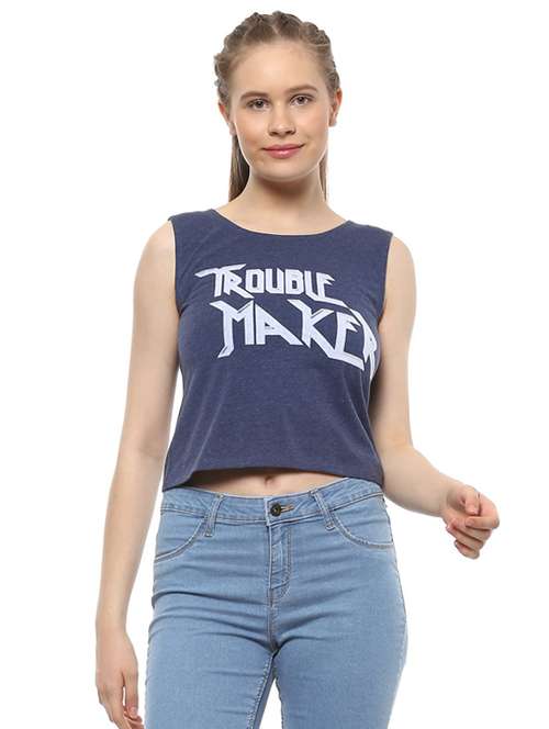 blue printed crop top