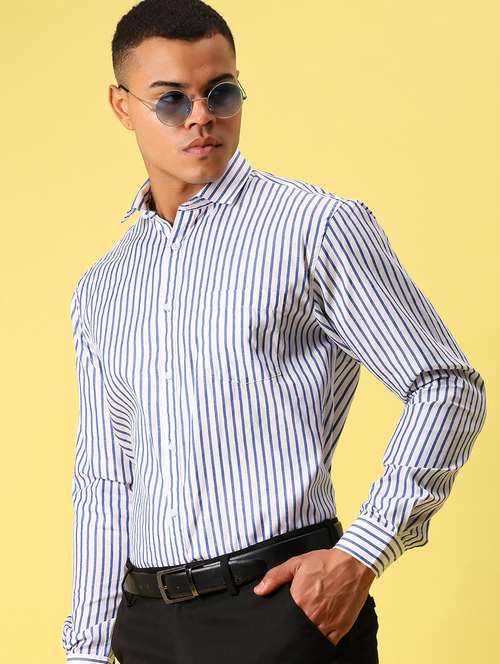 men striped long sleeve regular fit formal shirt