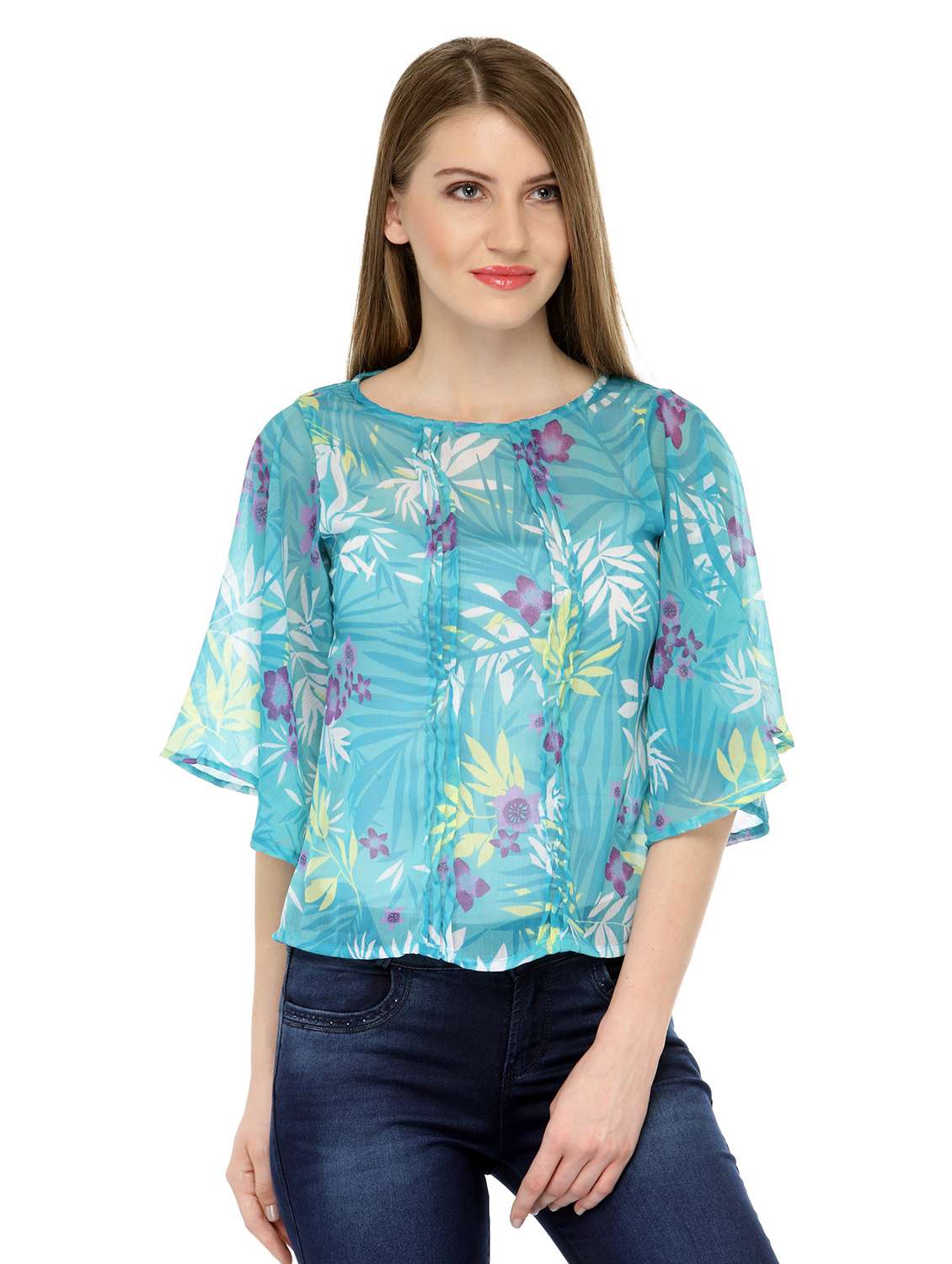 - Opt for this top made up of poly georgette material and get it in a varied neck design.