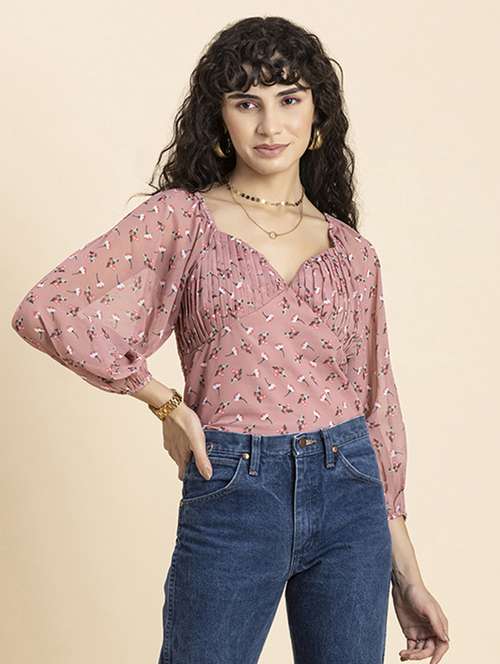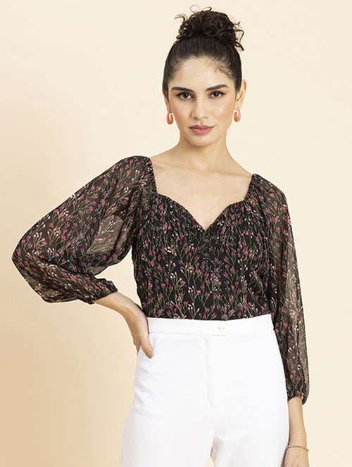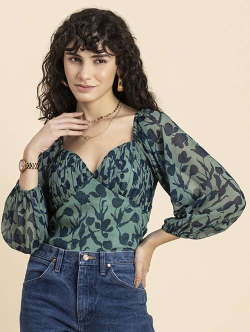 *Includes: This Clothing Consists Of 1 Top (Any Accessories Worn By The Model Are Not For Sale)*Material: Poly Georgette Gsm: 76*Top Length: 18 Inches (Approx.)*Model Stats: The Model In The Image Is 178 Cm Tall, And Bust 34\ Inches Is Wearing Size - (S) Small*Features: Ruched Bust, Sweetheart Neck, Long Balloon Sleeves, Cropped Length, Lightweight And All Over Printed Pattern*Care: Machine Wash At 30 C, Tumble Dry At Low Heat, Iron On Low Temperature*Size Information: Please Refer To Our Size Chart Before Making The Purchase. If Your Size Is In Between Two Sizes, We Recommend That You Choose A Larger Size*Tags: Ruched Tops For Women, Trendy Tops For Women, Crop Tops For Women, Sweetheart Neck Tops For Women, Long Sleeves Tops For Women, Stylish Tops For Women