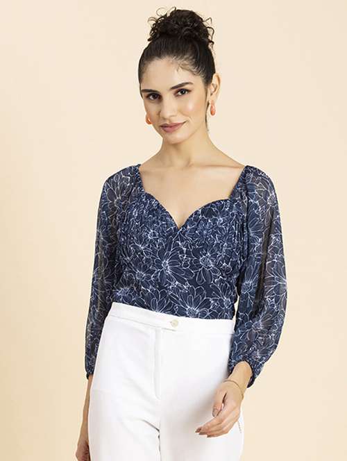 - Opt for this top made up of poly georgette material and get it in a varied neck design.