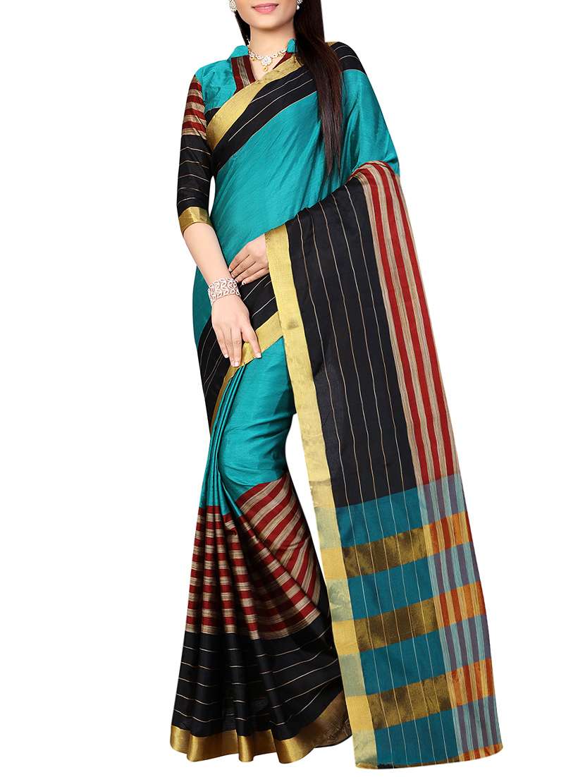 turquoise blue poly silk woven saree with blouse - 13883588 - Very Small Image - 1