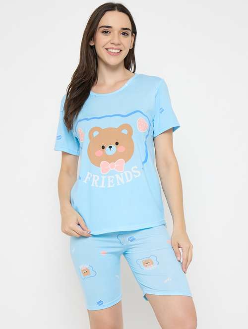 - After a long tiring day, slip into something homely, shop for the all-new collection of nightwear sets for ladies in M sizes and gorgeous blue designs and colors.