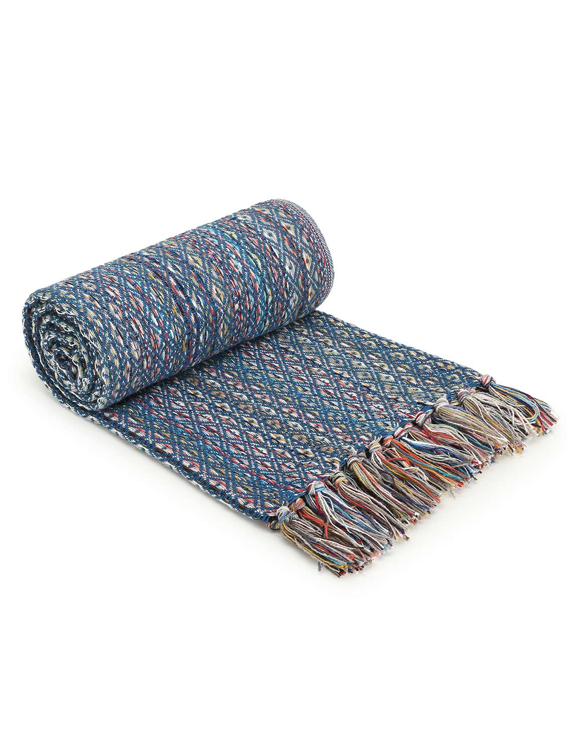 - » mezposh stave blue & multi striped pattern polycotton sofa throw (160 x 130 cm)