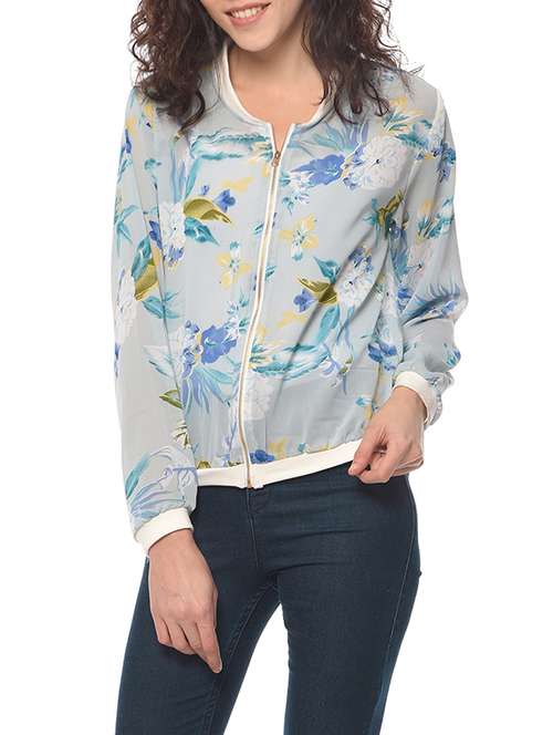 - » floral print blue summer jacket