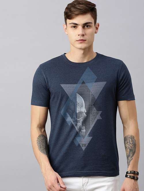 - » men navy blue slim fit graphic printed t-shirt