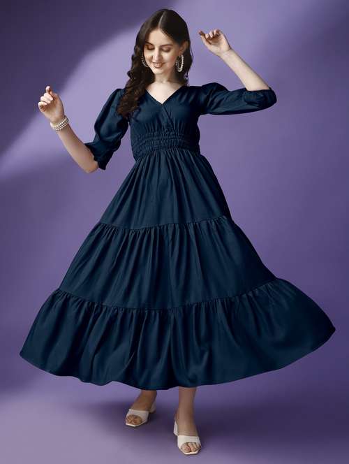 • Looking for some awesome collection of dresses? Well, lay your hands on  this dress from Jash Creation and also get the option of choosing from blue colour.