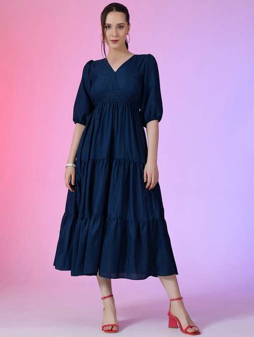 - Looking for some awesome collection of dresses? Well, lay your hands on this dress from Vastani enterprise and also get the option of choosing from navy blue colour.