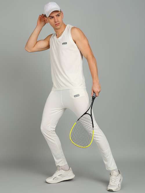 men solid sleeveless full length co-ord set