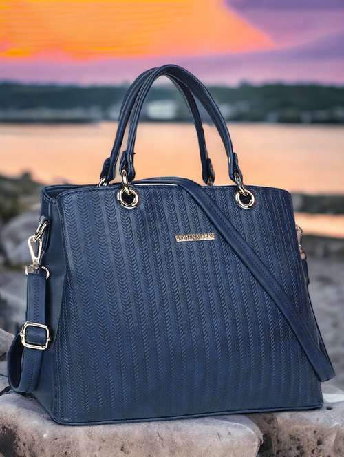 women navy blue textured handbag - 21716959 - Very Small Image - 1
