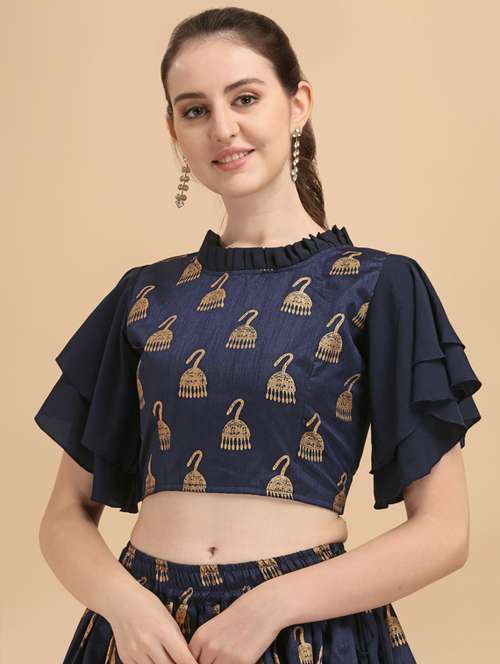 - » blue printed crop top