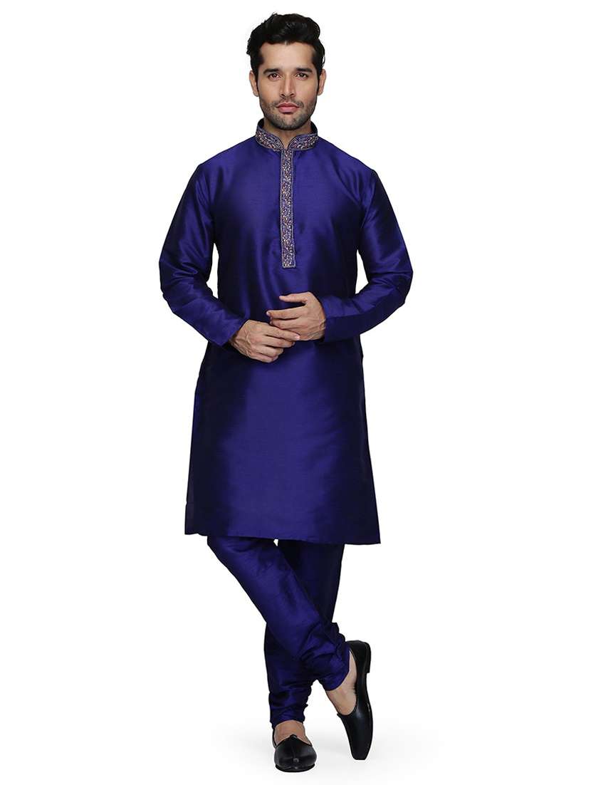 men solid long sleeve kurta and churidar set - 22000964 - Very Small Image - 1