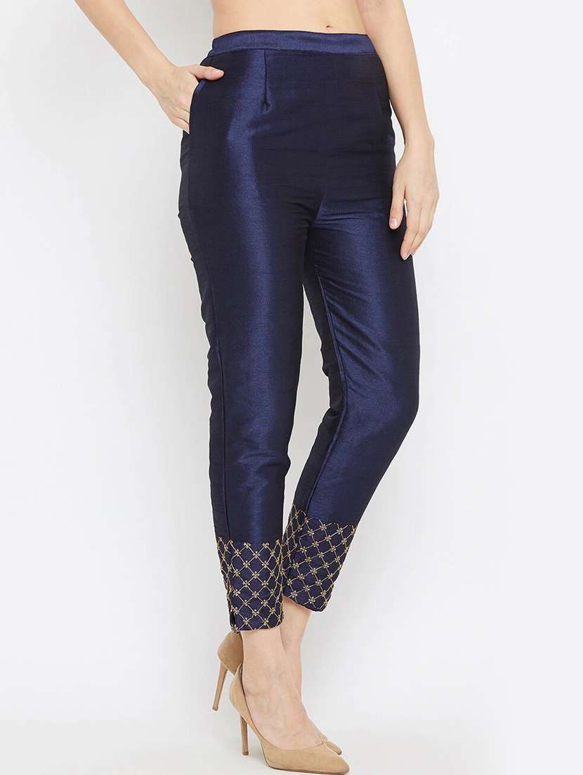 - » women mid rise solid with work flat front trousers