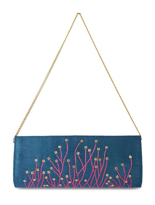 blue silk clutch