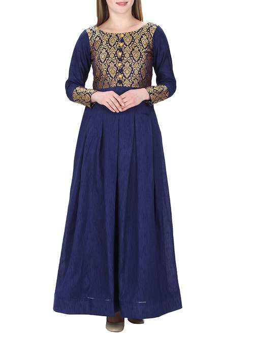 - » blue colord boat neck raw silk anarkali kurta