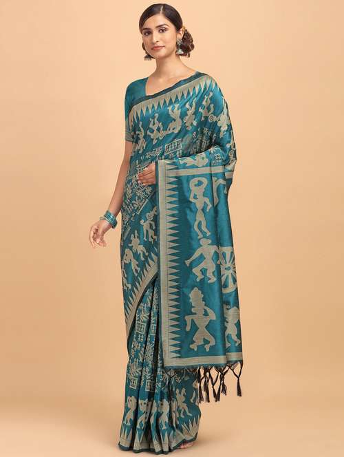 blue raw silk bhagalpuri saree with blouse - 18202948 - Very Small Image - 1