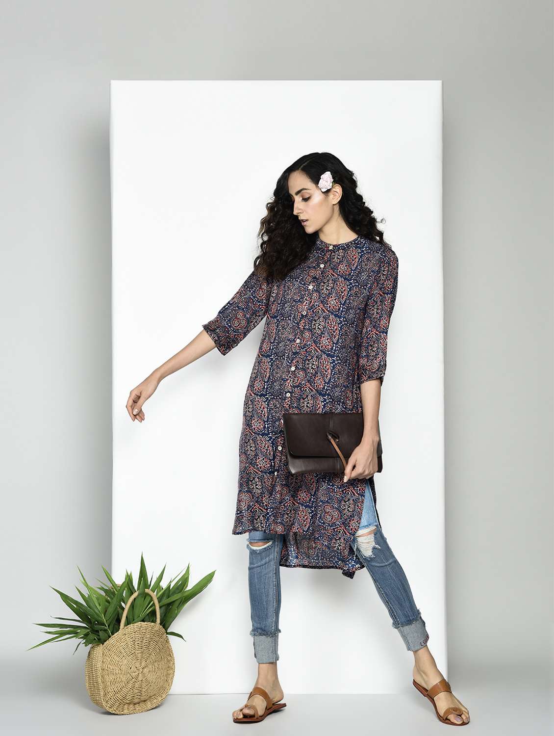 high-low front open kurta - 15441968 - Very Small Image - 1