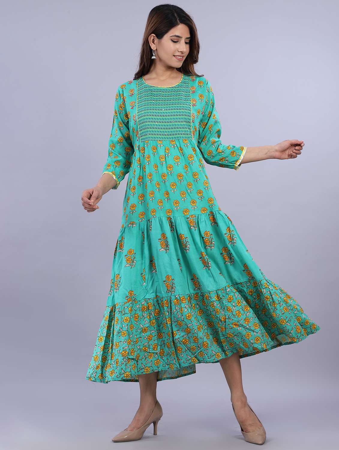 floral print tiered ethnic dress