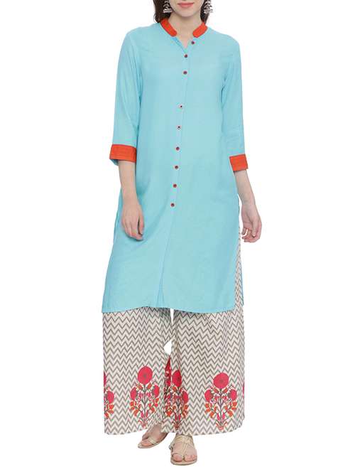 sky blue rayon straight kurta - 13942468 - Very Small Image - 1