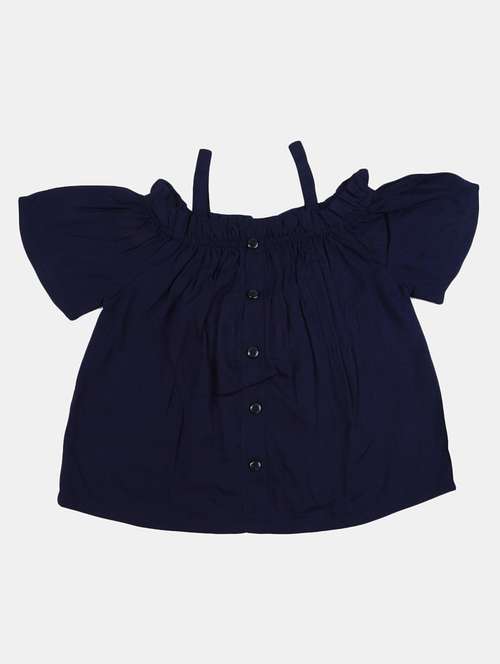 girls navy blue solid regular top