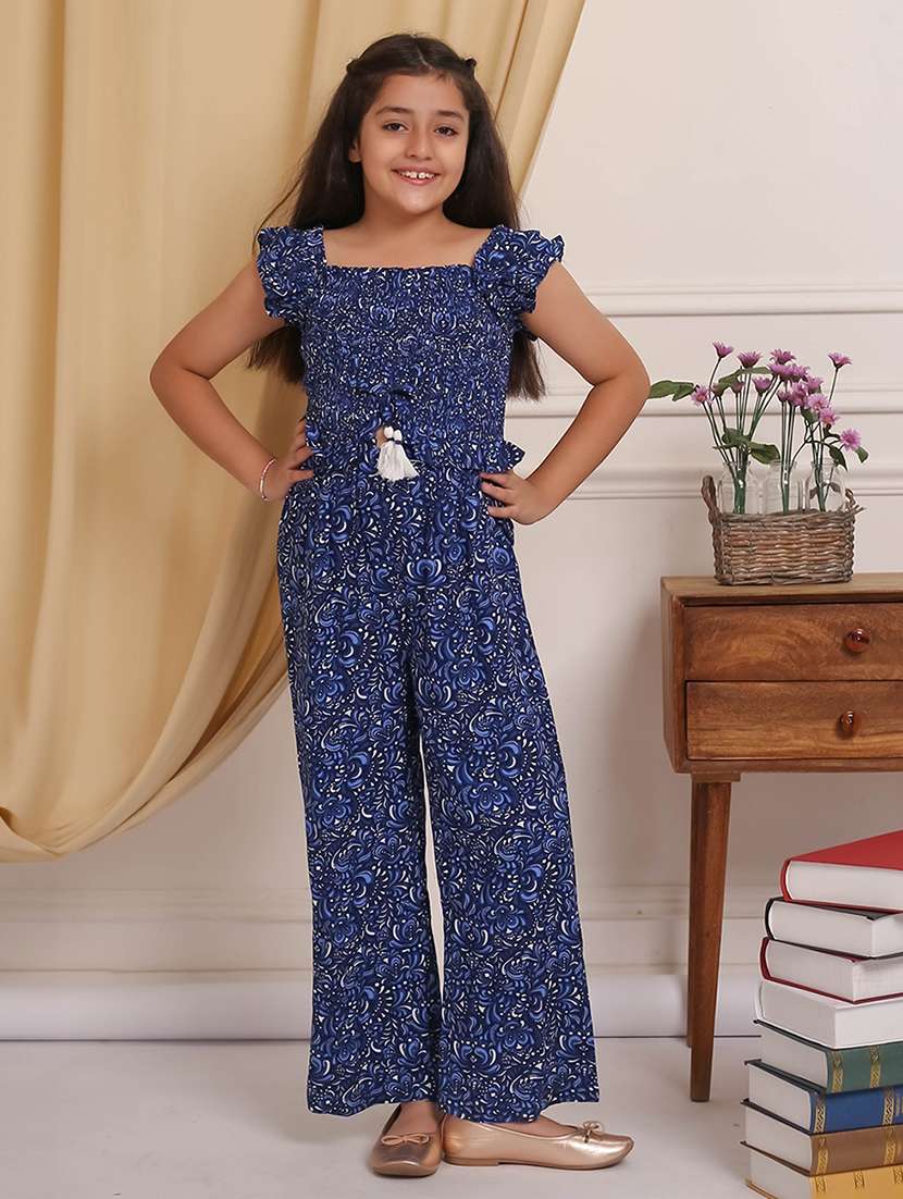 - » girls blue printed full length jumpsuit