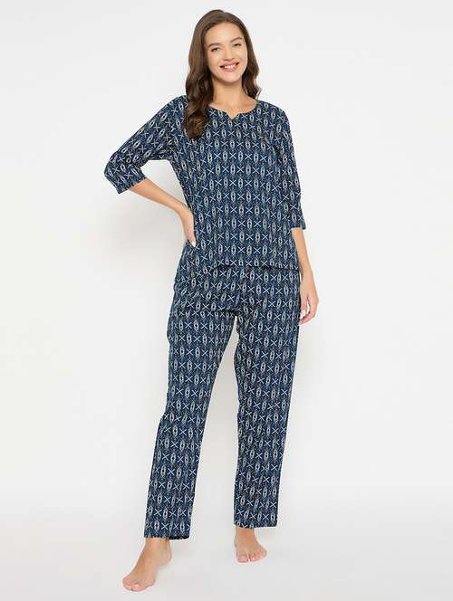 • After a long tiring day, slip into something homely, shop for the all-new collection of nightwear sets for ladies in 3XL sizes and gorgeous blue designs and colors.