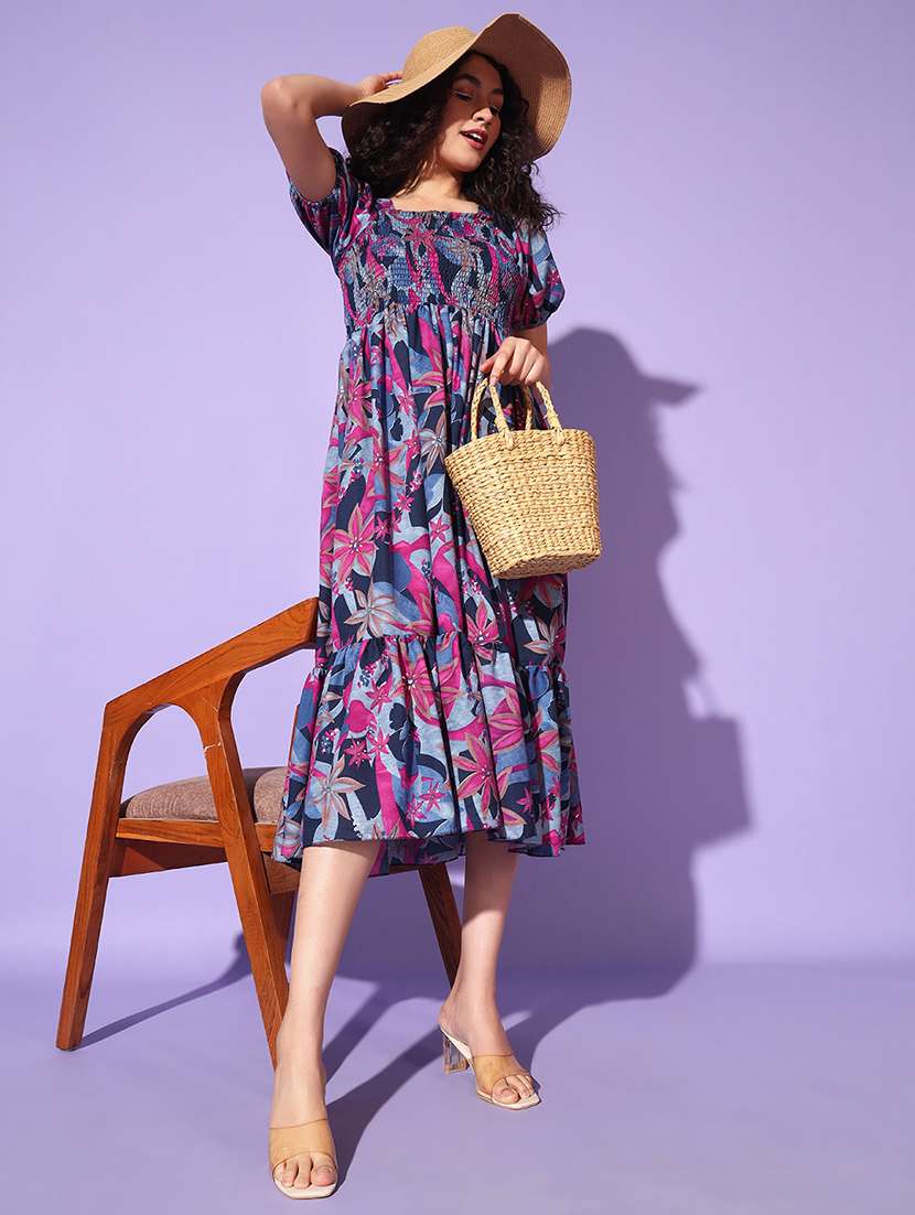 - Dress up in a soothing pattern and don this dress made of rayon material.
