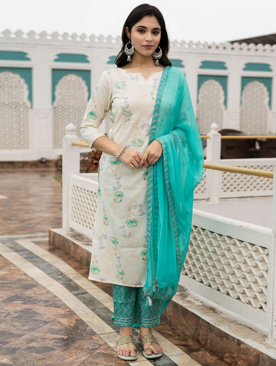 white printed kurta dupatta set
