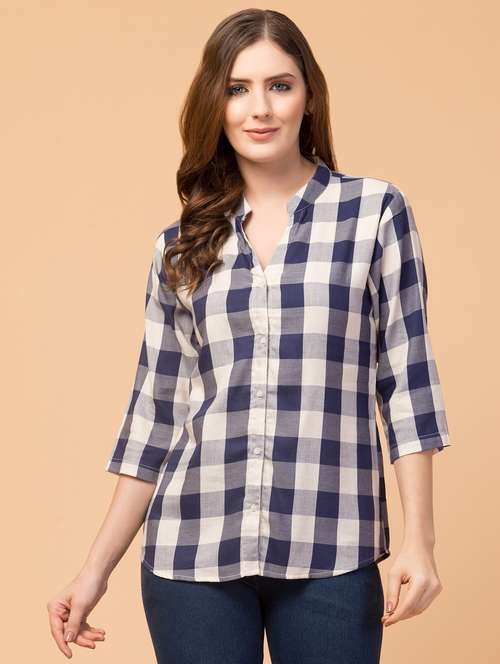 mandarin neck checkered tunic - 18397994 - Very Small Image - 1