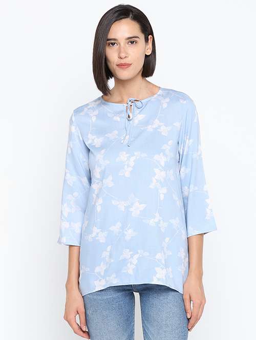 women's straight tie-up neck top - 16370337 - Very Small Image - 1