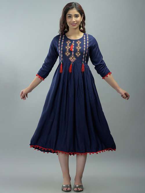- » navy blue rayon flared ethnic dress