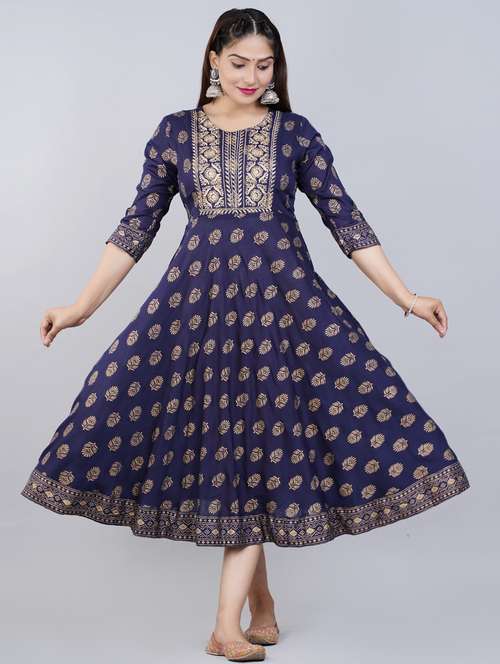 - » navy blue embroidered three quater sleeves ethnic dress