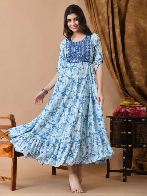 - LimeRoad brings to you the classic range of rayon ethnic dresses handcrafted with embroidered art to give you an effortless traditional look.