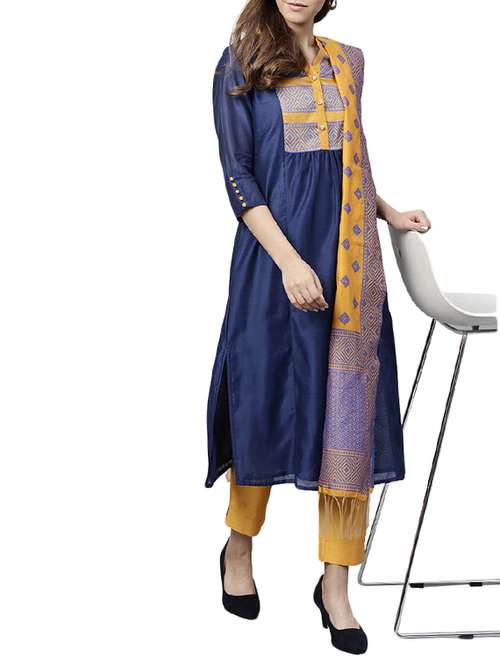 - » yoke design chanderi pant suit set