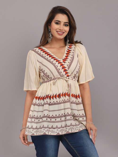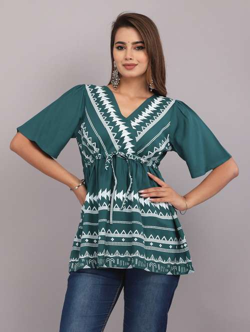 - Opt for this top made up of rayon material and get it in a varied neck design.