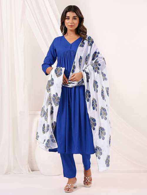 - Find gorgeous sets of ethnic wears in trending designs in blue colors suitable for festive wear of occasions.