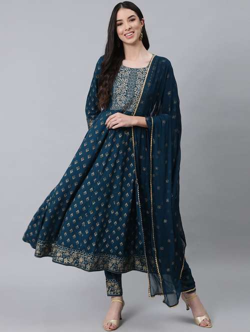 - » blue embroidered kurta palazzo set with dupatta