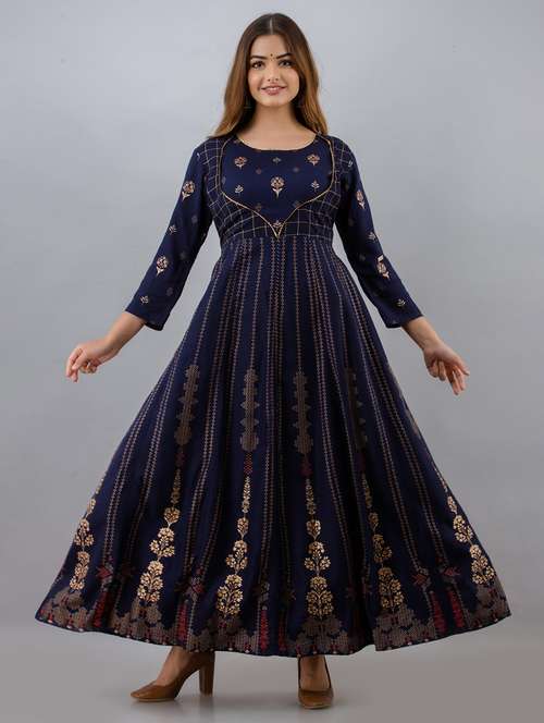 - Grab this beautiful kurta made up of rayon fabric featuring round neck designs.