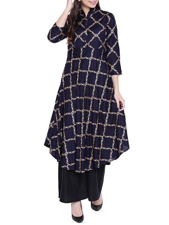 foil print flared kurta