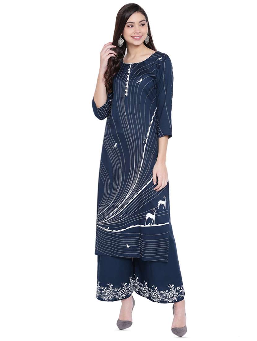 printed straight kurta palazzo set - 16025349 - Very Small Image - 1