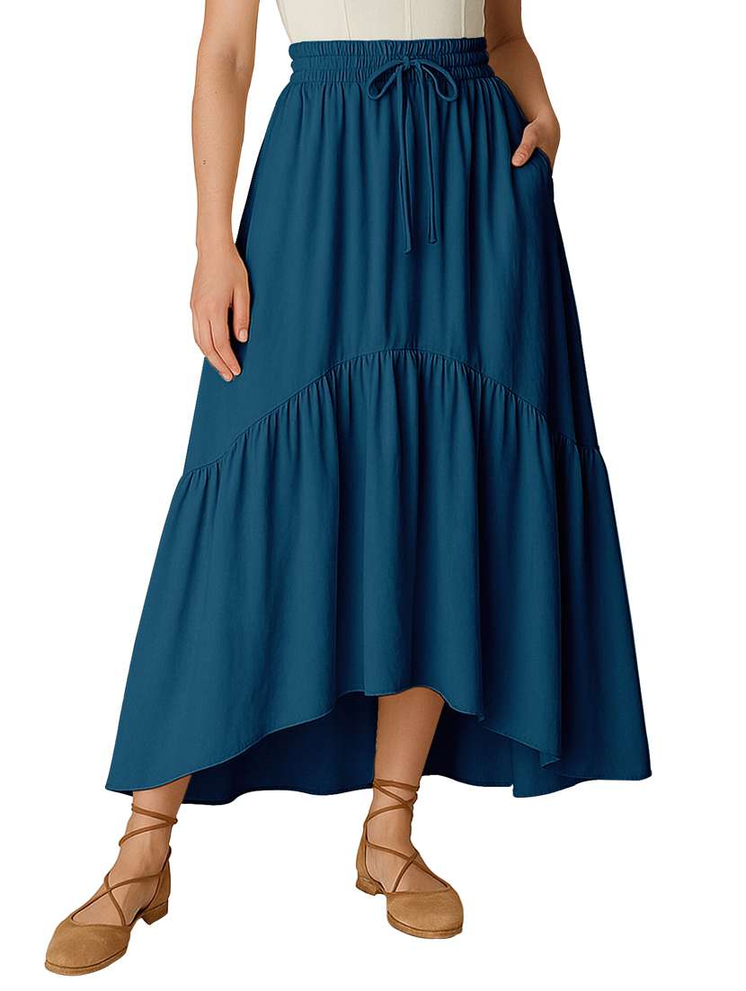 - » women solid high rise maxi tiered skirt