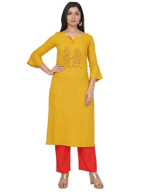 • Grab this beautiful kurta made up of rayon fabric featuring round neck designs.